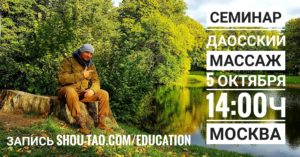 Открытый семинар “ДАОССКИЙ МАССАЖ: ежедневное восстановление” На предстоящем семинаре мы разберем массажные техники и приемы Школы ШОУ ДАО: массаж головы и шейно-воротниковой зоны, а также изучим способы восстановления после тяжелого рабочего дня и стрессов. Приходите, будет познавательно! Для всех пришедших на семинар – первое занятие в группе Минина Юрия “Обучение даосскому массажу и самомассажу” БЕСПЛАТНО. ?Семинар проводит: Парепко С.Н. @parepko_sergei ?Дата: 5 октября ?Время: с 14:00ч до 16:00ч ?Стоимость: 1500 р. ?Адрес: г.Москва , м.Щукинская… читать далее