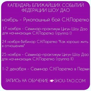 Друзья,доброго дня! Всем солнышка и тепла☀ В эту субботу 17 ноября с 10:00ч состоится семинар-практикум @parepko_sergei цигун для начинающих, группа закрытая, если вы хотите попасть в новый состав обучающихся, то оставьте свою заявку на нашем сайте ? shou-tao.com, занятия второй группы стартуют с 25 ноября Как же выбрать из множества предложений именно ЦИГУН ШКОЛЫ ШОУ ДАО? Весь секрет заключается в ОСОЗНАНИИ ЖИЗНИ, как бесценного ПОДАРКА СУДЬБЫ, и одной из основных целей учения Шоу Дао стало… читать далее